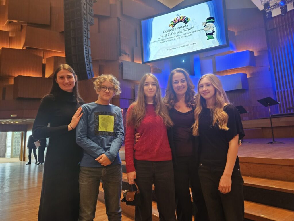 “U Koncertnoj dvorani Vatroslava Lisinskog dodijeljene su nagrade “Professor Balthazar” učenicima i mentorima zagrebačkih osnovnih i srednjih škola koji su na državnim natjecanjima u znanju, strukovnim vještinama te glazbi i plesu osvojili prvo, drugo ili treće mjesto. Nagrade su dodijelili gradonačelnik Grada Zagreba Tomislav Tomašević i pročelnik Gradskog ureda za obrazovanje, sport i mlade Luka Juroš.”